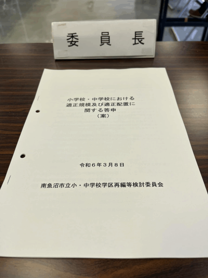 南魚沼市立小・中学校学区再編等検討委員会で最終答申案を教育長にお渡しすることができました